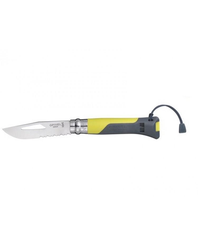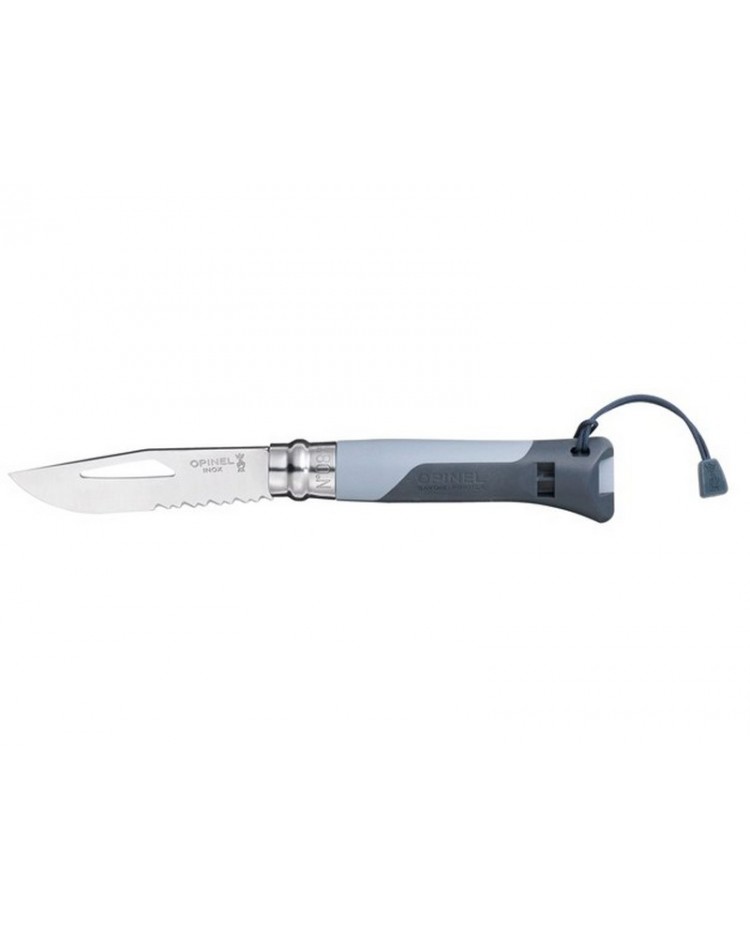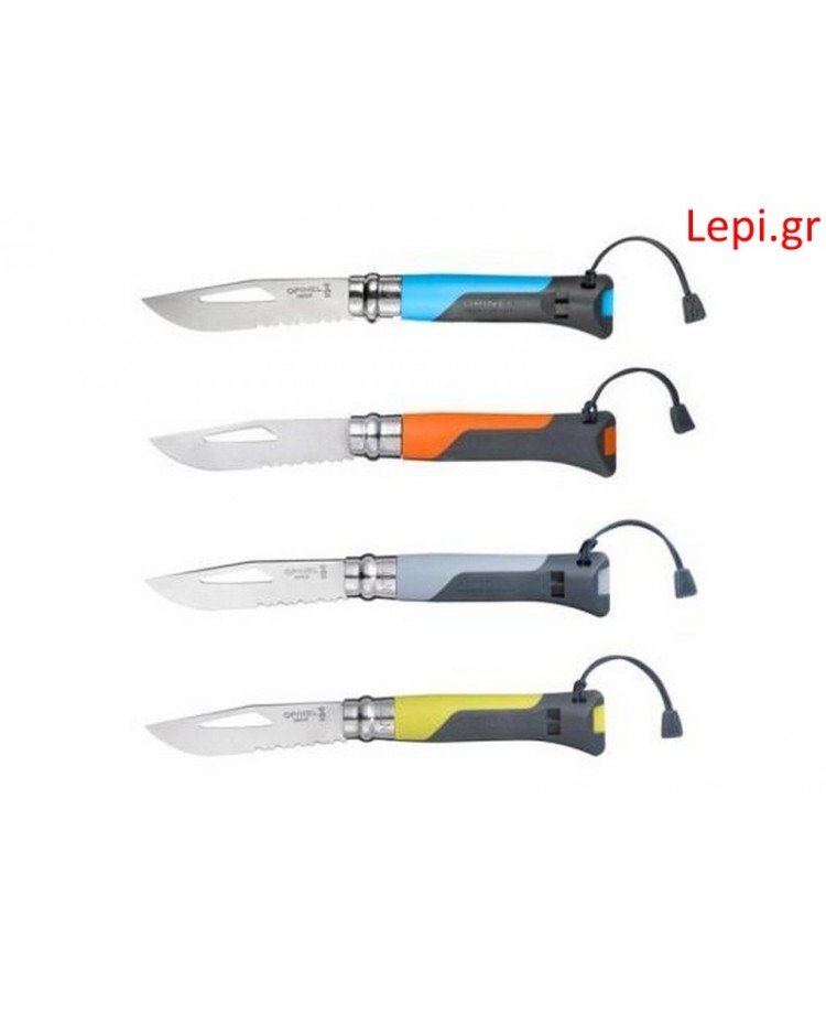 No.08 Outdoor - H νέα γενιά σουγιάδων Opinel! Ιδανικός για όλα τα σπορ στην θάλασσα και στο βουνό: Ορειβασία, Αλπινισμό, Αλεξίπτωτο πλαγιάς, Πεζοπορία, Εξευρεύνηση Σπηλαίων, Ιστιοπλοϊα, Κανό και άλλες θαλάσσιες Δραστηριότητες. Ο Νο.08 Outdoor διαθέτει λάμα 8,5 cm από ανοξείδωτο ατσάλι Sandvick 12C27 πάχους 2,5 mm που της δίνει μεγάλη ανθεκτικότητα.