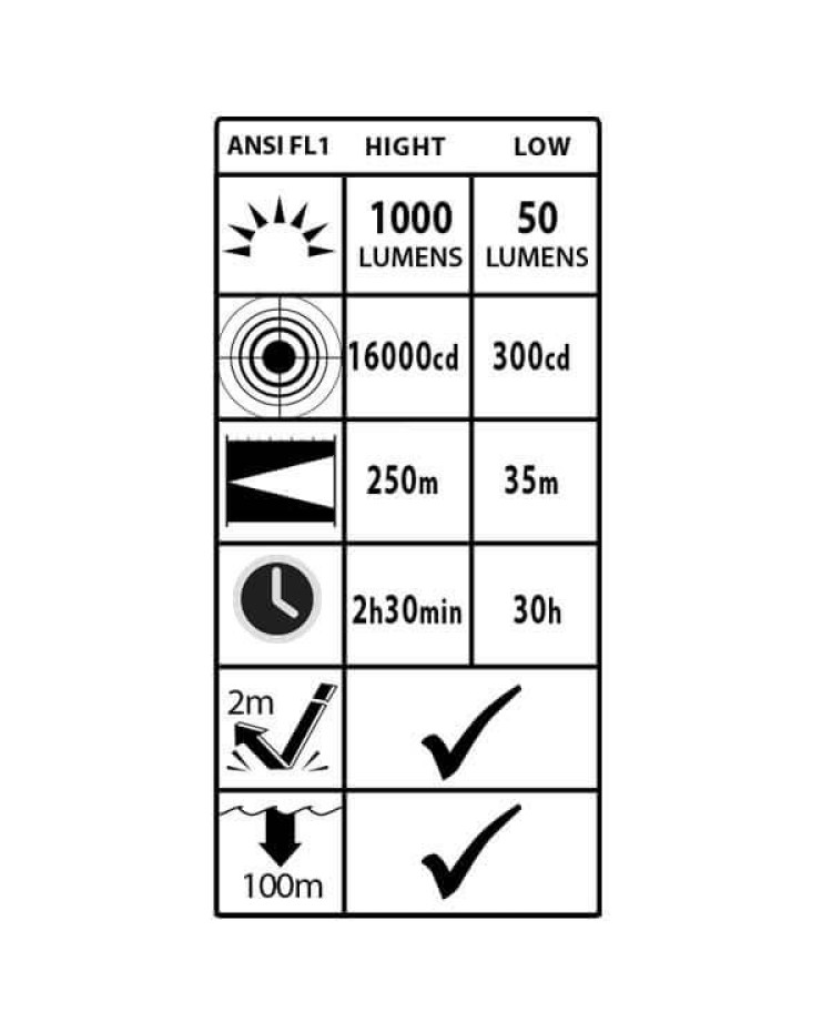 - Ισχυρή σκάλα 2,5 ώρες 1000Lumens